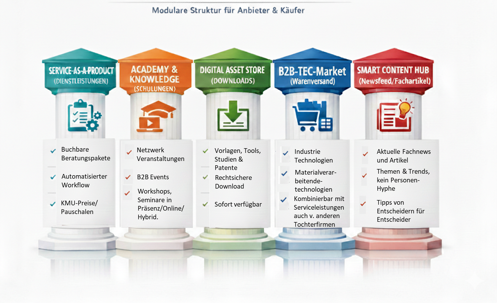 Auf SMARKT können Sie jegliche B2B Dienstleistung (Service, Schulung) und technologienbezogene oder materialverabeitende Produkte direkt von Anbieter/Hersteller kaufen. Sprich auf SMARKT können Sie alles was für Ihr operatives Geschäft oder für die Herstellung oder Weiterentwicklung notwendig ist, finden. Sie selbst sind herzlich eingeladen ebenfalls ein B2B Service oder Produkt zu verkaufen.